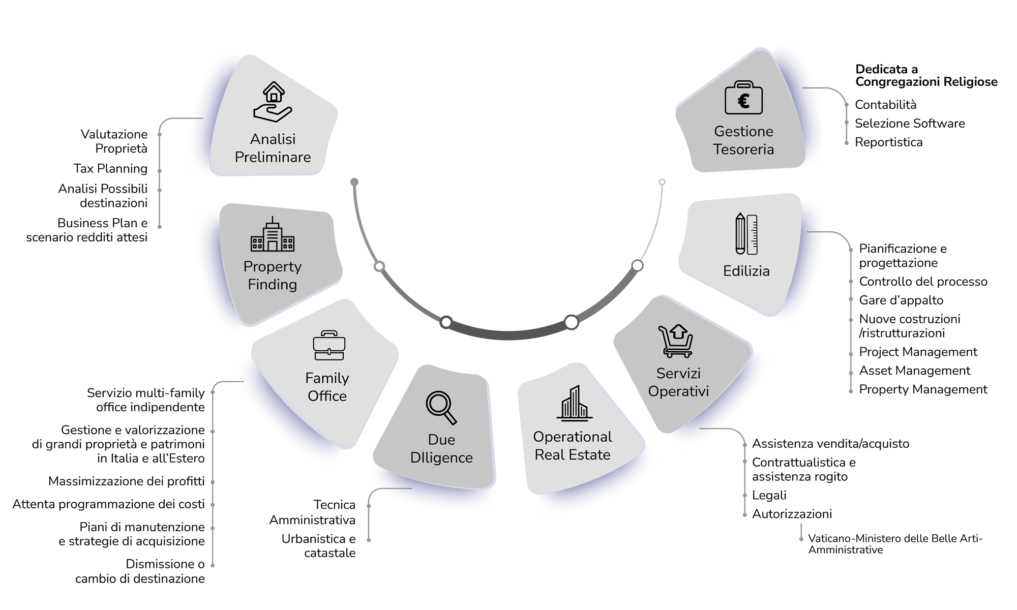 Offriamo consulenza immobiliare altamente specializzata e declinata sulle esigenze di ogni cliente, con focus sulle Congregazioni Religiose, gli Enti Ecclesiastici e il Vaticano – Santa Sede.